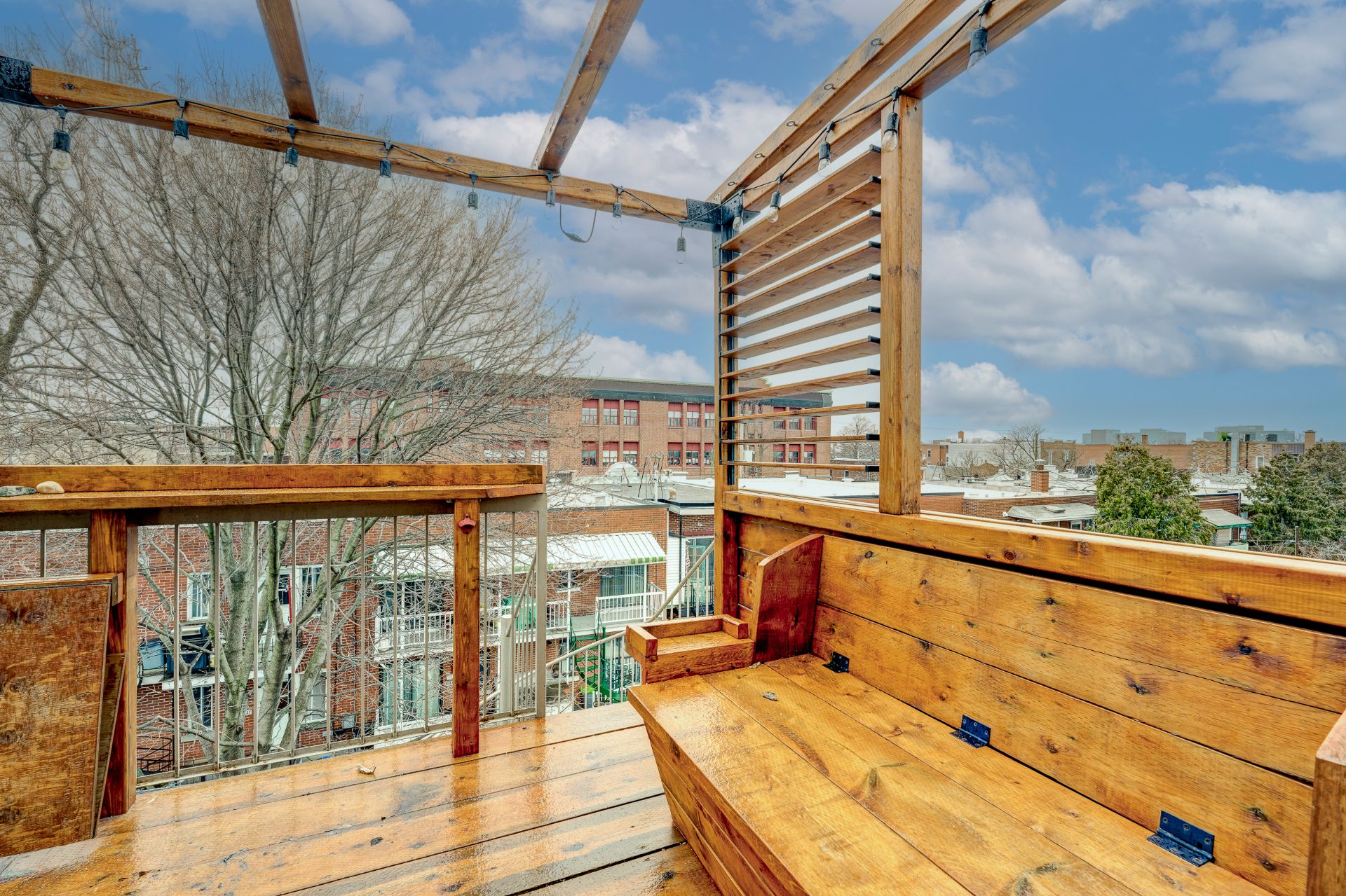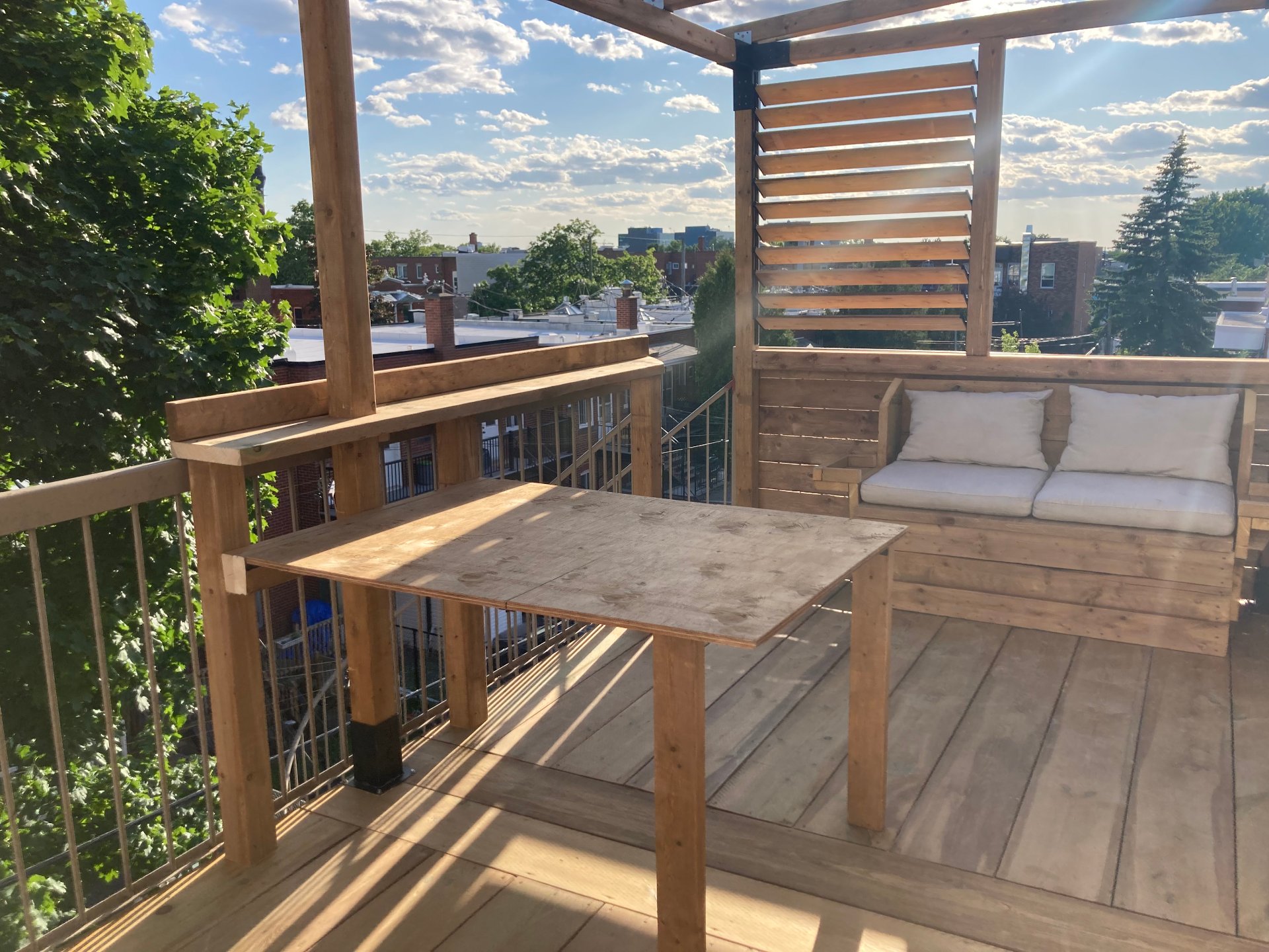 sur un vaste balcon arrière. Celui-ci est aménagé avec une